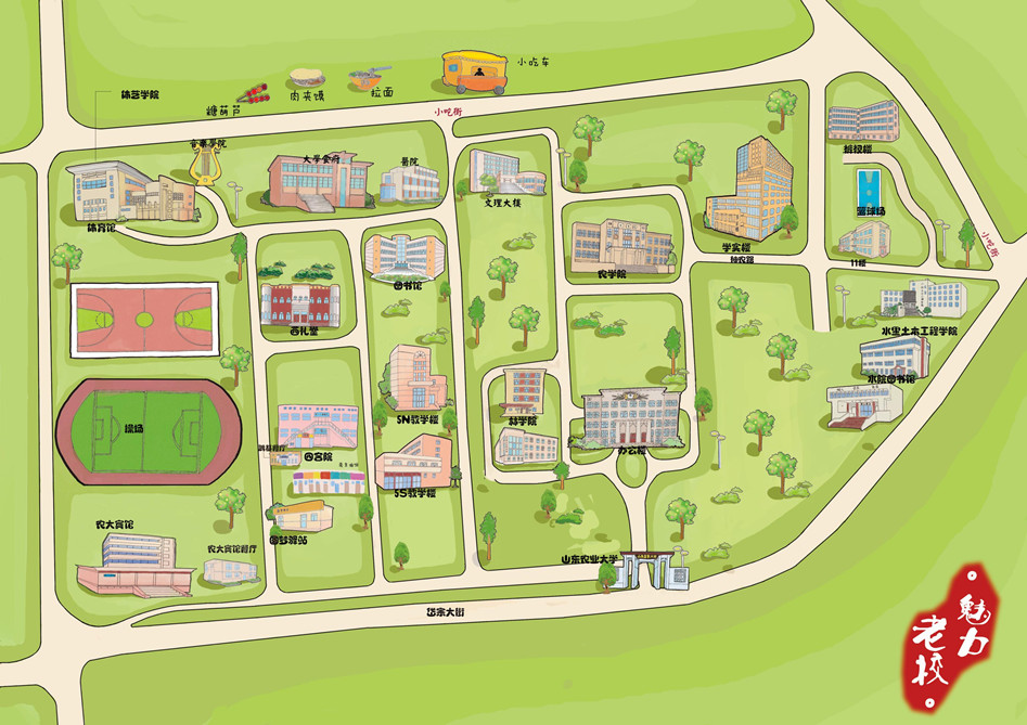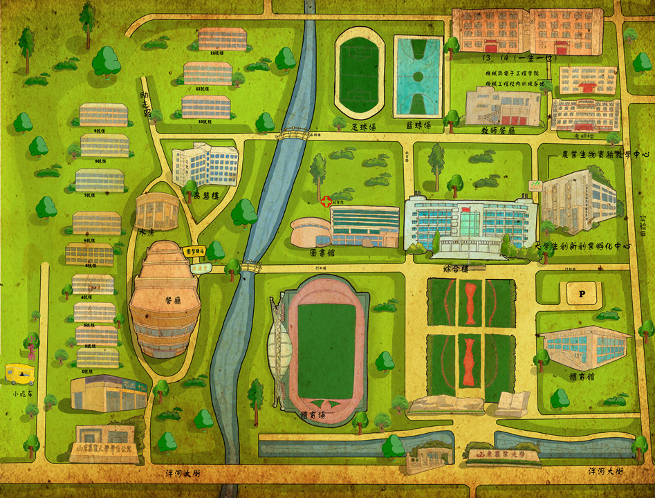 以下为学校北、东、南三校区手绘示意图,供新生提前熟悉、了解所在校区环境。